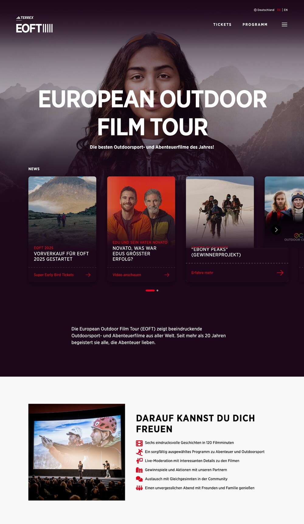 Die Filme der MAM-Events entführen ihr Publikum in vergessene Welten und zeigen, wie viel Inspiration da draußen steckt. Wir helfen dabei, dass der Webauftritt den bildgewaltigen Filmen gerecht wird.