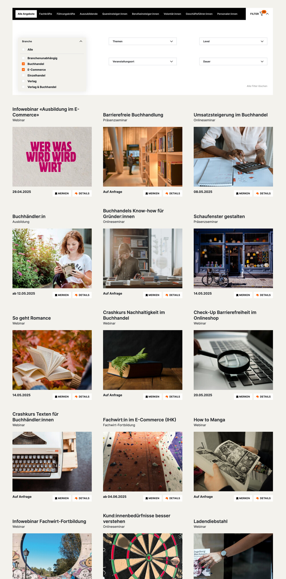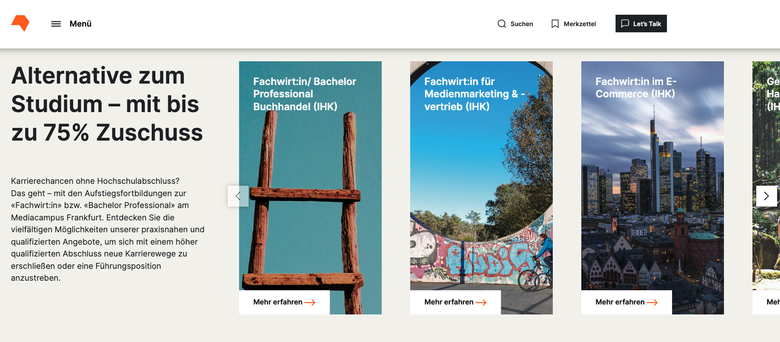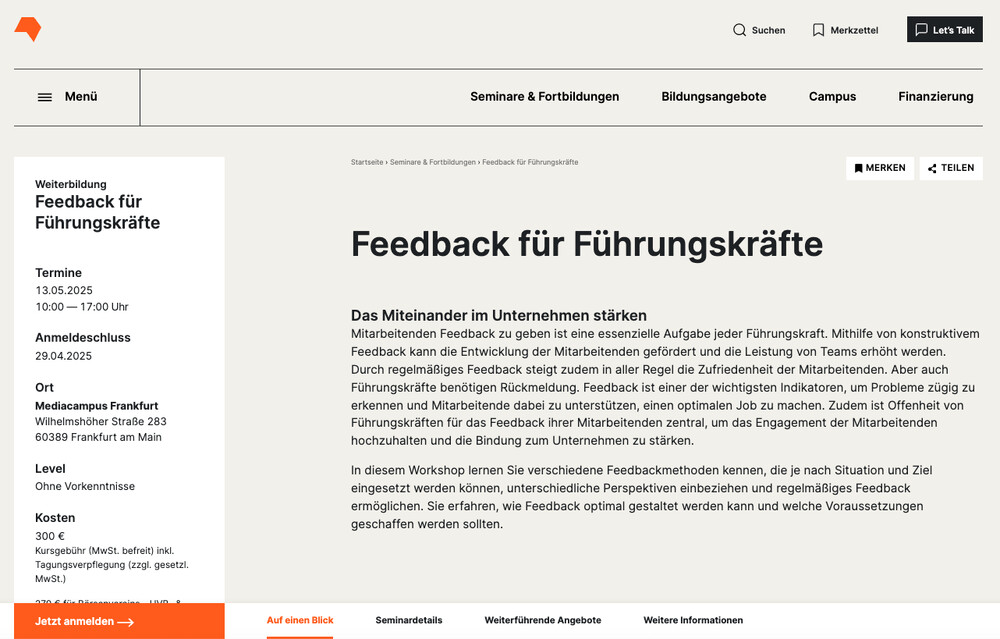 Die Seminare und Veranstaltungen des Mediacampus Frankfurt bieten passgenaue Lösungen für die immer neuen Anforderungen im Verlagswesen - wir die passgenauen Lösungen für deren Darstellung und Buchung.