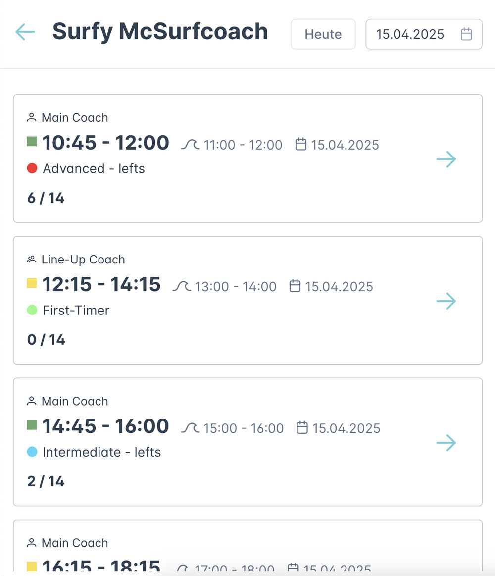 Dutzende Surf Coaches auf der Fläche koordinieren – Wann geben sie wo welche Session?